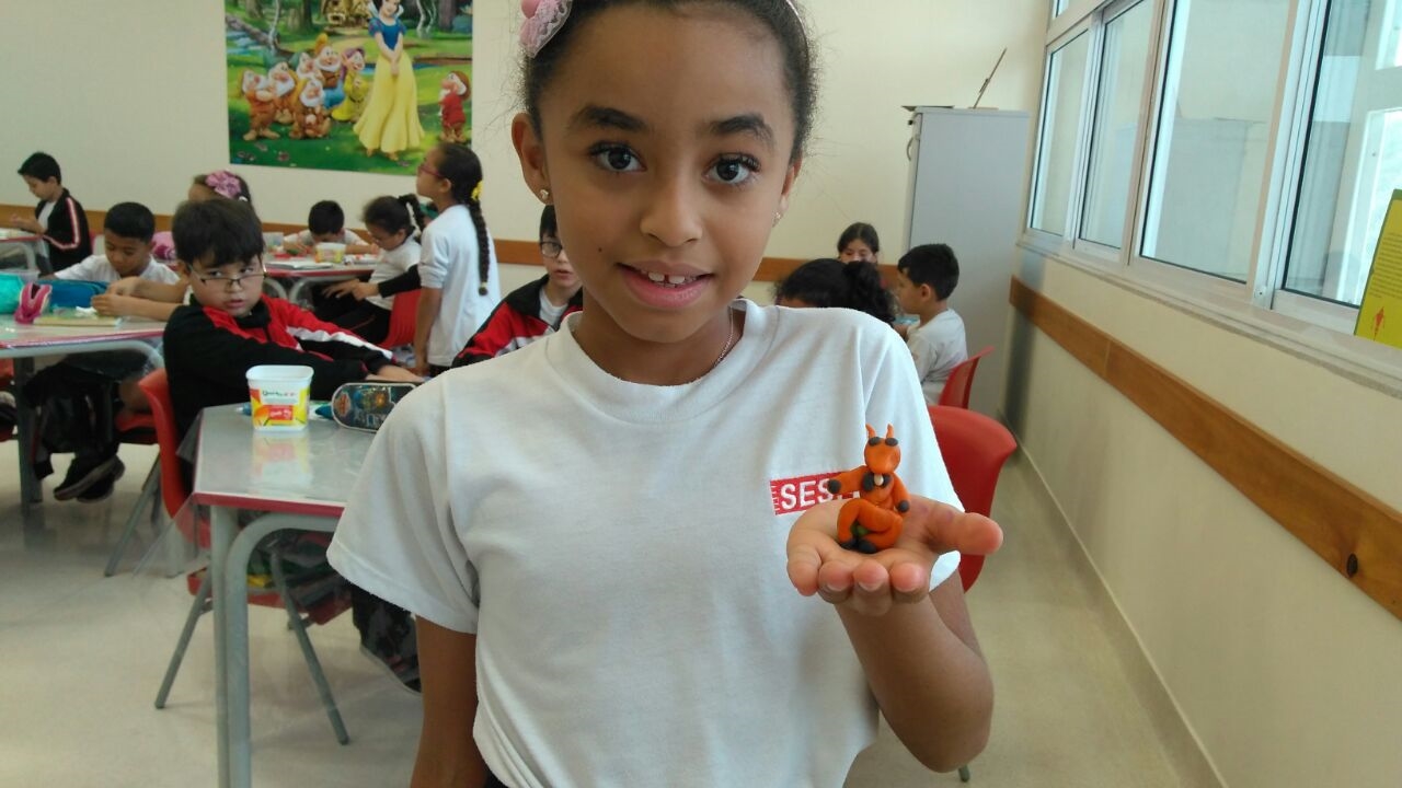 Os alunos do 2° ano da Escola SESI de Taubaté realizaram releitura da obra A CUCA de Tarsila do Amaral.