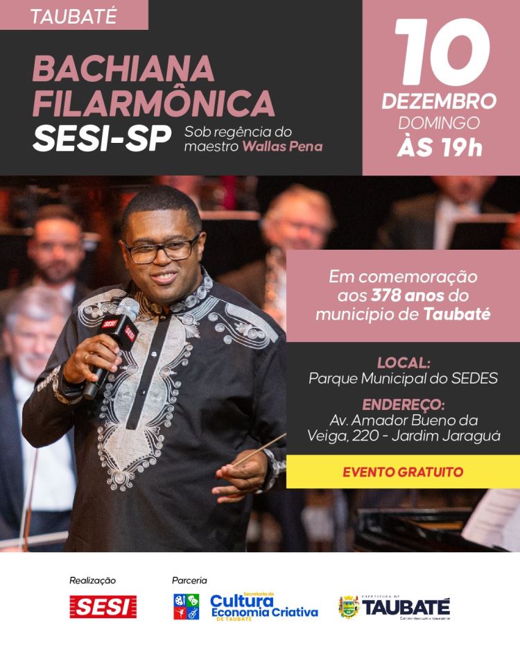 A Orquestra Bachiana Filarmônica do Sesi-SP estará em Taubaté para comemorar os 378 anos da cidade.
